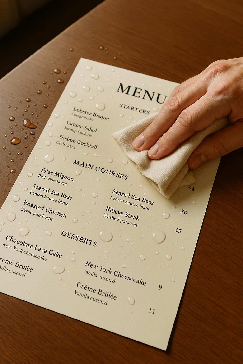 Rock Paper menus are made to perform. Fully waterproof, tear resistant, and built to withstand the busiest restaurants, they eliminate the need for costly lamination while elevating your presentation. Crafted from limestone, they’re a durable and eco-friendly alternative to traditional menus.